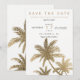 Palmeiras de ouro falsas modernas e simples com tipografia simples, um tema de casamento tropical e moderno de salve a data em palmeira.