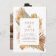 Invistam seus hóspedes com esse elegante cartão de data, com lindas folhas rústicas de palma e grama de pampas com tipografia moderna. Basta adicionar os detalhes do seu evento neste modelo fácil de usar para torná-lo um tipo de guardar o cartão de data.