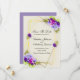 Um elegante design geométrico com pansias azuis, roxas e fuchsia. Esta data salva faz parte de um conjunto completo de convites para o casamento.