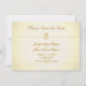 Um fundo estilo papel de pergaminho antigo e desgastado forma a base deste modelo de anúncio de casamento Salve a Data. Emblemas decorativos em tons de dourado completam este design totalmente personalizável.