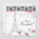 Convite para casamento Salve o cartão de data/convite com torre e rosas bonito em preto e branco em Paris e com o padrão de folha damask.
