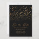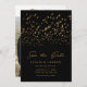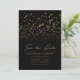 Este maravilhoso casamento Salve o cartão da data mostra incontáveis pássaros se unindo em folha de ouro falso sobre um fundo preto puro. O título "Aves" significa a importância de a vida do casal se juntar ao casamento. O verso contém um modelo de foto. Elegante, elegante, moderno e único!