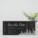 O casamento entre o Nova Iorque de Manhattan, preto e prateado, e o destino da linha do horizonte de Manhattan, salvo a data em forma de passagem de embarque com espaço para alojamento em hotel e múltiplos detalhes de eventos para os seus hóspedes planejarem a sua viagem mais cedo. Cartões salve a data de ingresso são divertidos para convidados que estão viajando para o seu casamento - talvez o local do casamento não esteja longe de você, mas talvez a maioria de seus convidados esteja participando do exterior, e um tema de viagem, salvo a data, os entusiasma para planejar umas férias em volta de suas núpcias e recepção. Clique em 'personalizar mais' para alterar todas as fontes, cores, texto e design. Outras opções de cor estão disponíveis no repositório Zazzle Destinos de forma de papel.