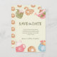 Christmas cookie exchange party save the date card featuring elegant fonts in which all your personalized information is written encircled with playful gingerbread cookie and hot cocoa mug illustrations in a muted pastel color scheme. Check out our store for more items from this collection.