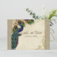 SELEÇÃO DE PAPEL: Isso é mostrado em "papel básico", outra ótima escolha seria "gelo metálico", que é uma superfície branca e brilhante perolada. Também ficaria lindo em linho "Champagne Metálico", feltro ou qualquer uma das outras opções. PALETA DE CORES: taupe, azul aqua, bege, azul real creme, verde e ferrugem. DESIGN: Este anúncio ou convite de Save the Date inspirado em antiguidades e vintage faz parte da coleção de casamento correspondente e possui um conjunto completo de produtos e pode ser criado em várias combinações de cores. Se você quiser que ele combine com o seu casamento, nos avise por e-mail e ficaremos felizes em ajudá-lo. Este design consiste em um majestoso pavão em um galho de árvore, elemento de arte vintage, sobreposto a três penas de pavão vintage e sobre uma gravação de anjo, espirais, escrita à mão antiga, renda pintada à mão sobreposta em pergaminho e um belo padrão damasco de
