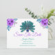 Reserve A Data Pavão Verde e Azul | Flores De Aquarelas Roxas