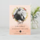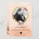 Uma encantadora salva a data para primavera ou verão com um toque de charme botânico. Efeito de cor de pêssego com uma camada segura de flores e folhagem de cor d'água. No verso desta placa está um jardim de cheios de flores ao longo da borda inferior. Substitua a foto do espaço reservado por sua própria foto de noivado, nomes e data do casamento.
