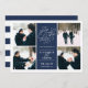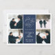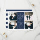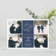 Simples e elegante, nossa foto Romântica de solicitação salve o cartão de data, com quatro de suas fotos de noivado favoritas organizadas em formato quadrado, com seus detalhes de casamento no centro, em branco, em azul marinho. "Salve a data" aparece na tipografia branca com um coração chic trabalhado no design. Adicione seus detalhes de casamento, incluindo nomes, data de casamento e local. Cartões que se revertem a faixas horizontais modernas em marinho e branco, com um campo de texto adicional para o seu site de casamento ou informações adicionais.