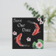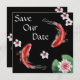 Este casamento Salvar o convite da Data captura a beleza oriental do Japão. Tem um belo fundo preto com dois peixes Koi nadando cercados por um caldeirão lírio e flores. O peixe Koi simboliza o amor no Japão.