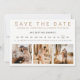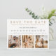 Moderno simples falso dourado tipografia simples salvar a data com colagem de grade de 3 fotos, pencil nos em, círculo no dia e mês. Mova os corações para a sua data!