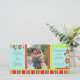 Noivado de Casamento Divertido com Poppies! Cartão com fotos personalizável colorido em azul-aqua, papoilas vermelhas laranja e primavera verde brilhante com sotaque listrado. Você pode personalizá-lo com sua própria foto e informações sobre a data do casamento para fazer seu próprio anúncio personalizado de tendências fantásticas. Parte da coleção Poppy Fun por expressões em papel