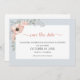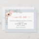 Esta elegante salva o cartão de data oferece uma bela cor d'água de pêssego. O gráfico floral é acentuado com um fundo azul claro e empoeirado.