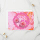 Este Anúncio de casamento "Salve a data" apresenta peões cor-de-rosa num fundo em camadas de arte digital.