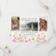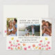 Wildflower wedding save the date card with 3 custom photos and watercolor wild flowers. Announce your upcoming wedding with this charming watercolor floral engagement announcement card. Featuring a beautiful arrangement of hand-painted flowers in soft pinks, oranges, and yellows, this card brings a touch of natural beauty to your special news. The design includes a space for your favorite engagement photos, allowing you to share your joyful moments with friends and family. The elegant typography clearly states 'Save the Date' along with your names and wedding date, ensuring your loved ones mark their calendars. Perfect for a spring or summer wedding, this card sets a romantic and whimsical tone for your celebration. Please browse my store in the Wildflower Bloom collection, for matching items.