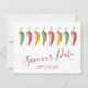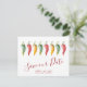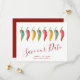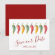 Anuncie que você está noiva com meus convites de "save the date" de pimenta malagueta apresentando as palavras Salve Nossa Data em um estilo de tipografia de roteiro moderno que evoca a aparência de letras à mão. Este simples cartão apresenta minha arte original em aquarela com seus nomes, data do casamento e local do casamento. O verso dos cartões é de cor vermelha profunda complementar. Perfeito para casamentos de estilo latino. Para ver o conjunto de casamento correspondente e mais convites de "save the date" sem foto de Victoria Rigali, visite DoTellABelle no Zazzle.