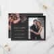 This Save the date card features pink shiny metallic flowers on a black background.