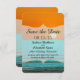 Cartão de save-the-date de casamento com um lindo design de nascer do sol laranja na praia e água do mar azul-turquesa. Design muito clássico e sofisticado para o casal que se casa. Todas as impressões de fotos.