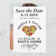 Mande a sua família e amigos este casamento divertido guarde o cartão para anunciar o seu noivado. Esta moda design apresenta duas fatias de pizza deliciosa com queijo, pepperoni, pimentos e cogumelos. Acima, lê-se "Salvar a Data do casamento de" com os nomes para personalizar. Abaixo das fatias de pizza lê-se "pizza torta que está mais" A parte de trás do cartão tem uma foto para você substituir por sua própria, para salvar a data que sua família e amigos adorarão! Parabéns pelo seu noivado! Desenhado pela artista ©Susan Coffey.