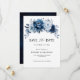 Elegante cartão de salvar a data do casamento tema azul desbotado / naval com um buquê elegante de flores azul desbotado, botão de rosa naval, folhas de eucalipto azul. Por favor, entre em contato comigo para qualquer ajuda na personalização ou se você precisar de qualquer outro produto com este design.