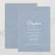 Um convite elegante de batismo ou batizado com delicada poeira de estrelas prateadas. Você pode personalizar com os detalhes da sua celebração especial de batismo ou batizado em tipografia sofisticada em um fundo azul poeirento. Criado por Thisisnotme©
