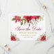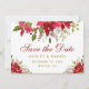 Cartão de Save the Date de Casamento de Natal com Poinsettia Floral Aquarela Dourado Vermelho