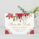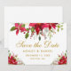 Cartão de Save The Date de Casamento de Férias com Poinsettia Floral em Aquarela Dourado