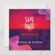 Um cartão moderno e vibrante de pôr do sol roxo para salvar a data você pode personalizar com sua fotografia favorita. Este design arrojado e que chama a atenção, com um toque tropical e tipografia sofisticada, fará com que o anúncio de suas núpcias se destaque! Adicione sua foto no verso do cartão e você estará pronto. Por favor, note que adicionamos um filtro e uma sobreposição semitransparente à foto do modelo para combinar com a frente do cartão. Você pode facilmente remover o filtro e ocultar a sobreposição usando a função de edição.
