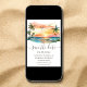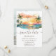 Apresentamos o nosso Save the Date de casamento com foto do pôr do sol tropical em aquarela, um design lindo que captura a essência de um casamento sonhado na praia. Com suas cores vibrantes e imagens pitorescas, este cartão define o tom perfeito para a sua celebração tropical que se aproxima.