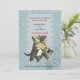 Divertido personalizável Salve o design de Data. O doce gato de noiva vintage segura um buquê de casamento de rosa branca e o gato do Groom fica ao seu lado com seu chapéu preto. Fundo de Aqua floral. Personalize com seus nomes e texto da data do casamento.