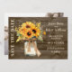Anuncie o seu casamento em estilo country-chic com este cartão de salve a data de girassóis rústicos. Com uma bouquet de girassóis em aquarela em um pote de pedra, contra um fundo de madeira de celeiro, este design é perfeito para casamentos de outono, fazenda ou ao ar livre. Personalize com seus nomes, data do casamento e uma foto favorita no verso para uma primeira impressão bonita.