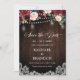 Cartão de salvar a data de casamento boho floral de madeira rústica apresenta gráficos de aquarela pintados à mão / rosas em tons ricos de Borgonha, Vermelho Marsala azul naval e rosa beijado / pêssego e tipo de letra estilo letra à mão com jarro de corda e fundo de madeira rendada. Por favor, entre em contato comigo para qualquer ajuda na personalização ou se você precisar de qualquer outro produto com este design.