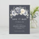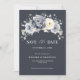 Cartão de aviso de casamento de inverno com flores elegantes apresenta buquê de flores em aquarela cinza, marfim e prata com folhagens de tons gelados. Por favor, entre em contato comigo para qualquer ajuda na personalização ou se você precisar de qualquer outro produto com este design.