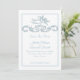 This elegant Save the Date card features a delicate powder blue Toile de Jouy–inspired design with romantic floral garlands and a graceful flying cherub motif. Drawing inspiration from classic French art and vintage Parisian stationery, the soft blue monochrome palette evokes timeless elegance and refined romance.