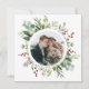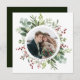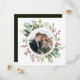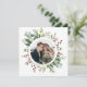 Este Natal | Feriado guardar a data de apresentação dos elementos de cartão plano pintados de aquarela eucalipto, folhas verdes, bagas vermelhas, ramos de pinho com uma fotografia circular e texto personalizado no verso. Para personalização mais avançada deste design, clique no link "personalizar mais". Itens correspondentes também estão disponíveis.