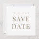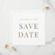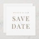 Branco elegante com texto Dourado Salve a data. Casamento. Contemporâneo e moderno. Simples. Quadrada.