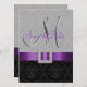 A elegância sofisticada é veiculada por este belo casamento Salve o design do Cartão de Data. Uma cinza e preto na cor damasco preta serve como pano de fundo para um efeito fotográfico da Prata Metálica Inicial M e de uma fita de cetim roxa e broche de diamante TODOS IMPRESSOS no CARTÃO FLAT Salvar os Anúncios de Casamento de Data. Uma maneira perfeita de anunciar seu próximo casamento. Cor damasco temporária, porém clássica, com um design que permite personalizar a frente com seus nomes e a parte traseira é livre para adicionar o texto personalizado para salvar a data. O Convite para Casamento é definido para o monograma inicial "M". Para outras letras, cor de fita e fundo diferentes, entre em contato com o designer em luxuryweddinginvitations@gmail.com. Design de layout por Elke Clarke©. Gráficos licenciados. Além disso, escolha entre várias fontes e belos papéis para fazer seus convites de casamento PERFECT!