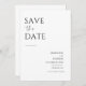 Anuncie seu grande dia em estilo eterno com este casamento preto e branco salve o cartão de data. Projetado com uma tipografia ousada e moderada e um layout minimalista, este cartão é perfeito para casamentos elegantes, clássicos ou formais. Personalize facilmente com seus nomes, data do casamento, local e site opcional. Este design elegante combina maravilhosamente com convites para casamento preto e branco, cartas de RSVP e artigos de papelaria do dia. Simples. Sofisticado. Inesquecível.