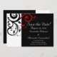Conjunto de papelaria e casamento preto contemporâneo moderno ousado e impressionante com preto e branco com sotaques vermelhos, com delicado fundo de folha de pergaminho em redemoinho. Personalize online com os detalhes do seu casamento. Este item está disponível como uma coleção completa de casamento, incluindo convites, cartões de RSVP, Save the Dates, Ímãs, Adesivos, Cartões de Localização de Mesa, Planejamento de Casamento e Álbum de Fotos e Mais!