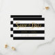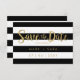 Moderno Salve os cartões de convite de casamento de data com fundo listrado preto e branco com fonte de efeito folha de ouro.