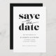 Este na moda para salvar o cartão de data contém as palavras "salvar a data" gravadas em uma mistura de fontes de serif e script e tem muito espaço para seus nomes, assim como a data do casamento e a localização em preto e branco clássico.
