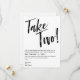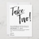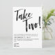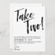 Um casamento encantador adiado salve o novo cartão de data em branco com texto preto. Take Two! está escrito em um script de pincel na parte superior do cartão. Escreva sua nova data de casamento e informações adicionais em uma fonte moderna.