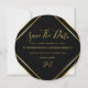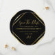 Convites de Save the Date Redondos Simples Elegantes Preto e Dourado Modernos