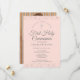 Um elegante convite de Primeira Comunhão com data para guardar, apresentando delicado brilho prateado sobre um fundo rosa blush. Você pode personalizar com os detalhes da celebração em texto prateado elegante e uma foto especial no verso. Desenhado por Thisisnotme©