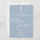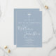 Convite elegante de primeira comunhão para salvar a data, apresentando uma assinatura de nome em letra cursiva elegante em um fundo azul desbotado. Personalize com as informações do seu evento especial. Criado por Thisisnotme©
