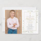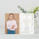 Com a sua foto especial, folhas delicadas de aquarela e um crucifixo dourado elegante, este convite de guardar a data para a Primeira Comunhão, neutro em termos de gênero, pode ser personalizado com as informações do seu evento especial, com um fundo de salva verde-prata no verso. Concebido por Thisisnotme©