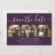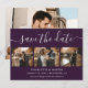 Create an elegant purple wedding save-the-date card featuring a modern script font, easily customizable with your photos, wedding details, and a wedding website if desired.