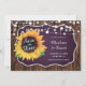 Casamento roxo russo salve o cartão de data com um girassol e luzes de cordas contra um fundo de madeira rústica. Design de placa perfeita para uma festa de casamento outono rústica.