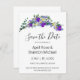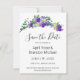 Um design elegante e vintage com eucalipto, lavanda e violetas roxas pintados em cor de água romântica. CARTÕES SALVE A DATA. Para começar a alterar nomes e detalhes do evento, clique em "Personalizar este modelo" e edite o texto nas caixas modelo. Para acessar as ferramentas de edição mais avançadas, role para baixo até "Clique para personalizar mais". Assim que estiver na ferramenta design do Zazzle, você poderá editar fontes, posicionamento, cor, dimensionamento e muito mais! Parte de uma suíte coordenada. Consulte a coleção de cheios aqui: https://www.zazzle.com/collections/lavender_eucalyptus_and_purple_violet_collection-119664202013606728