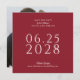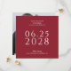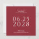 Um casamento simples, elegante e saboroso salve o cartão de data em um belo vermelho rico com texto de luz e mostra uma foto do casal feliz no verso do cartão. O modelo de texto é fácil de preencher com suas informações e a data é mostrada em grandes textos em negrito para ajudar seus futuros convidados no planejamento do seu grande dia. A forma quadrada única desta carta adiciona estilo moderno e deixa uma bela impressão para os seus destinatários.
