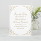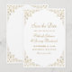 Este elegante cartão de salvar a data de casamento formal, inspirado em vintage, apresenta o texto em fontes douradas de script e serif, emoldurado por um delicado motivo de videira dourada vintage. A moldura é repetida no verso.
